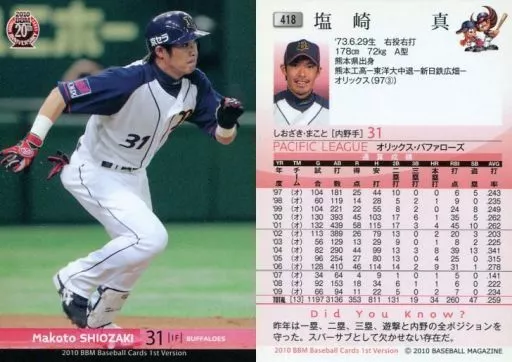 Nombre comercial en japonés: BBM/レギュラーカード/オリックス・バファローズ/BBM 2010 ベースボールカード 1stバージョン 418 [レギュラーカード] : 塩崎真