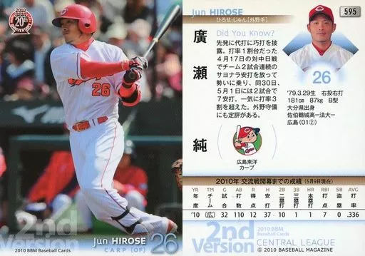 Nombre comercial en japonés: BBM/レギュラーカード/広島東洋カープ/BBM 2010 ベースボールカード 2ndバージョン 595 [レギュラーカード] : 廣瀬純