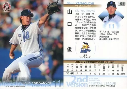 Nombre comercial en japonés: BBM/レギュラーカード/横浜ベイスターズ/BBM 2010 ベースボールカード 2ndバージョン 604 [レギュラーカード] : 山口俊