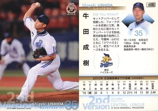 Nombre comercial en japonés: BBM/レギュラーカード/横浜ベイスターズ/BBM 2010 ベースボールカード 2ndバージョン 608 [レギュラーカード] : 牛田成樹