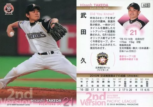 Nombre comercial en japonés: BBM/レギュラーカード/北海道日本ハムファイターズ/BBM 2010 ベースボールカード 2ndバージョン 623 [レギュラーカード] : 武田久