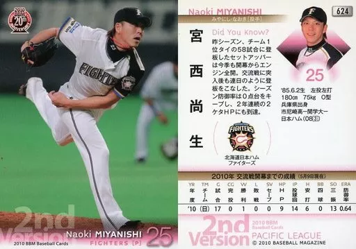 Nombre comercial en japonés: BBM/レギュラーカード/北海道日本ハムファイターズ/BBM 2010 ベースボールカード 2ndバージョン 624 [レギュラーカード] : 宮西尚生