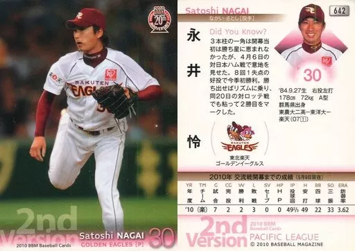 Nombre comercial en japonés: BBM/レギュラーカード/東北楽天ゴールデンイーグルス/BBM 2010 ベースボールカード 2ndバージョン 642 [レギュラーカード] : 永井怜