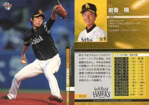 Nombre comercial en japonés: BBM/レギュラーカード/BBM 2011 福岡ソフトバンクホークス H20 [レギュラーカード] : 岩嵜翔