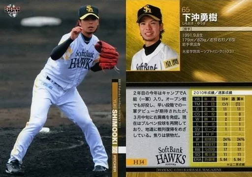 Nombre comercial en japonés: BBM/レギュラーカード/BBM 2011 福岡ソフトバンクホークス H34 [レギュラーカード] : 下沖勇樹
