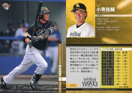 Nombre comercial en japonés: BBM/レギュラーカード/BBM 2011 福岡ソフトバンクホークス H55 [レギュラーカード] : 小斉祐輔