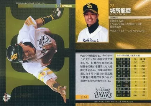 Nombre comercial en japonés: BBM/レギュラーカード/BBM 2011 福岡ソフトバンクホークス H61 [レギュラーカード] : 城所龍磨(パラレル版)