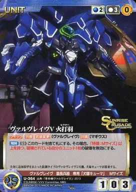Nombre comercial en japonés: クルセイド/C/UNIT/サンライズクルセイド 第21弾~運命の革命歌~ U-364[C]:ヴァルヴレイヴV 火打羽