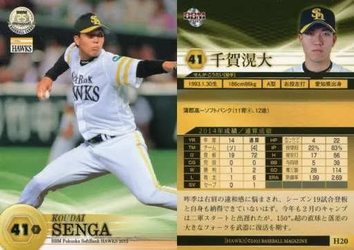 Nombre comercial en japonés: BBM/レギュラーカード/BBM2015 福岡ソフトバンクホークス H20 [レギュラーカード] : 千賀滉大