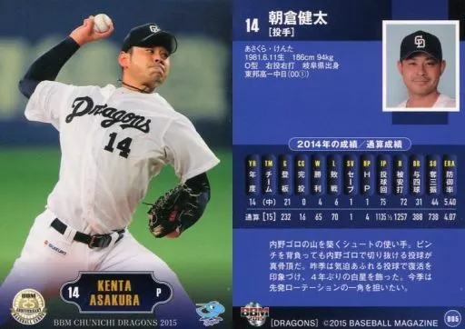 Nombre comercial en japonés: BBM/レギュラーカード/BBM2015 中日ドラゴンズ D05 [レギュラーカード] : 朝倉健太