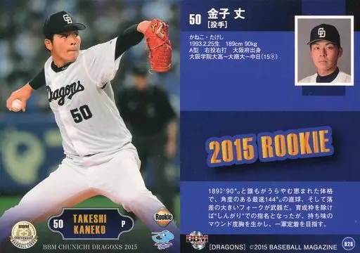 Nombre comercial en japonés: BBM/レギュラーカード/BBM2015 中日ドラゴンズ D26 [レギュラーカード] : 金子丈