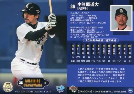 Nombre comercial en japonés: BBM/レギュラーカード/BBM2015 中日ドラゴンズ D48 [レギュラーカード] : 小笠原道大