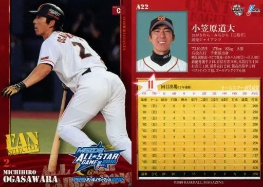 Nombre comercial en japonés: BBM/読売ジャイアンツ/BBM2010 オールスターカード A22 : 小笠原道大