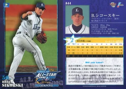 Nombre comercial en japonés: BBM/埼玉西武ライオンズ/BBM2010 オールスターカード A44 : シコースキー