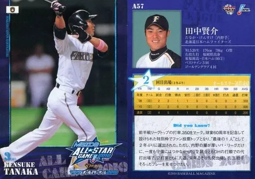 Nombre comercial en japonés: BBM/北海道日本ハムファイターズ/BBM2010 オールスターカード A57 : 田中賢介