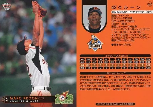 Nombre comercial en japonés: BBM/読売ジャイアンツ/BBM2008 第59回日本シリーズカードセット S37 : クルーン
