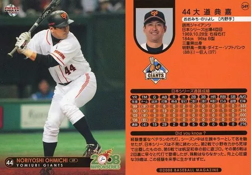 Nombre comercial en japonés: BBM/読売ジャイアンツ/BBM2008 第59回日本シリーズカードセット S49 : 大道典嘉