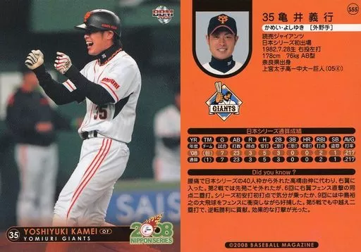 Nombre comercial en japonés: BBM/読売ジャイアンツ/BBM2008 第59回日本シリーズカードセット S55 : 亀井義行