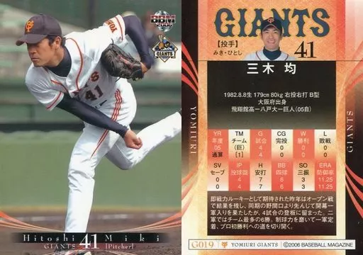Nombre comercial en japonés: BBM/レギュラーカード/BBM2006 読売ジャイアンツ G019 [レギュラーカード] : 三木均