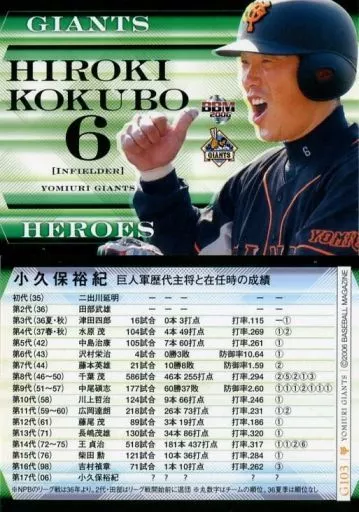 Nombre comercial en japonés: BBM/レギュラーカード/現役主力選手/BBM2006 読売ジャイアンツ G103 [レギュラーカード] : 小久保裕紀