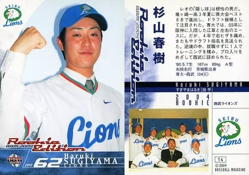 Nombre comercial en japonés: BBM/レギュラーカード/西武ライオンズ/BBM2004 ルーキーエディション 14 [レギュラーカード] : 杉山春樹