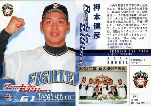 Nombre comercial en japonés: BBM/レギュラーカード/北海道日本ハムファイターズ/BBM2004 ルーキーエディション 29 [レギュラーカード] : 押本健彦