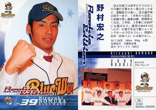 Nombre comercial en japonés: BBM/レギュラーカード/オリックス・ブルーウェーブ/BBM2004 ルーキーエディション 36 [レギュラーカード] : 野村宏之