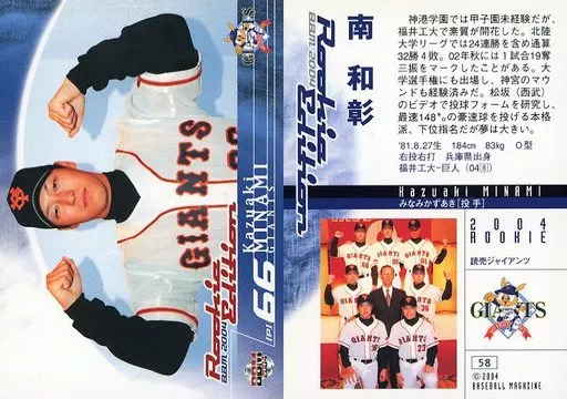 Nombre comercial en japonés: BBM/レギュラーカード/読売ジャイアンツ/BBM2004 ルーキーエディション 58 [レギュラーカード] : 南和彰