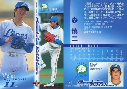 Nombre comercial en japonés: BBM/レギュラーカード/西武ライオンズ/BBM2004 ルーキーエディション 75 [レギュラーカード] : 森慎二