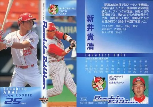 Nombre comercial en japonés: BBM/レギュラーカード/広島東洋カープ/BBM2004 ルーキーエディション 104 [レギュラーカード] : 新井貴浩