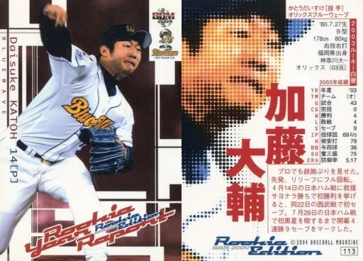 Nombre comercial en japonés: BBM/レギュラーカード/オリックス・ブルーウェーブ/BBM2004 ルーキーエディション 113 [レギュラーカード] : 加藤大輔