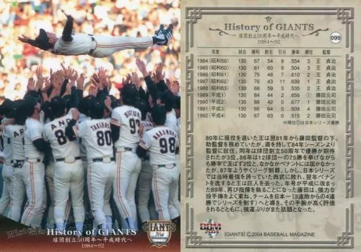 Nombre comercial en japonés: BBM/レギュラーカード/BBM2004 読売ジャイアンツ70周年記念カード 099 [レギュラーカード] : 1984~92