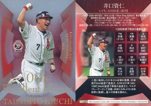 Nombre comercial en japonés: BBM/インサートカード/00’s Excellent Players/福岡ダイエーホークス/BBM2010 BBMカード20周年記念カード 00EP13[インサートカード]:井口資仁