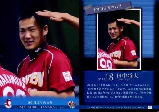 Nombre comercial en japonés: BBM/レギュラーカード/東北楽天ゴールデンイーグルス/BBM2010 田中将大カードセット「18」 9 [レギュラーカード] : 田中将大
