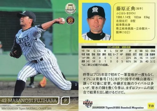 Nombre comercial en japonés: BBM/レギュラーカード/BBM2015 阪神タイガース T19 [レギュラーカード] : 藤原正典