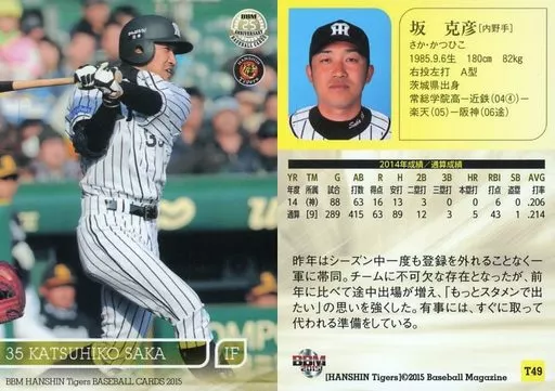 Nombre comercial en japonés: BBM/レギュラーカード/BBM2015 阪神タイガース T49 [レギュラーカード] : 坂克彦