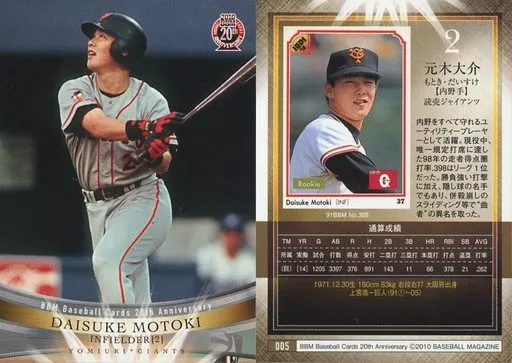Nombre comercial en japonés: BBM/レギュラーカード/OB/読売ジャイアンツ/BBM2010 BBMカード20周年記念カード 005 [レギュラーカード] : 元木大介