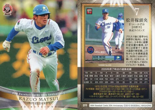Nombre comercial en japonés: BBM/レギュラーカード/OB/西武ライオンズ/BBM2010 BBMカード20周年記念カード 099 [レギュラーカード] : 松井稼頭央