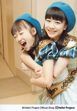 Morning Musume (Morning Musume) / Haruka KUDO / Ayumi ISHIDA / Hizajo / Disfraz azul / Azul claro / Oro / Sombrero azul / Cierre de ojos KUDO / Abrazo ISHIDA / Official photo oficial
