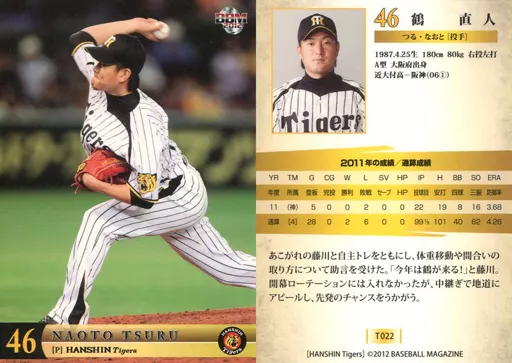 Nombre comercial en japonés: BBM/レギュラーカード/BBM2012 阪神タイガース T022 [レギュラーカード] : 鶴直人