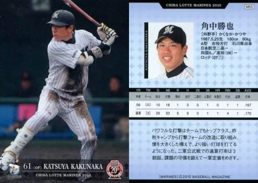 Nombre comercial en japonés: BBM/レギュラーカード/BBM2010 千葉ロッテマリーンズ M65 [レギュラーカード] : 角中勝也
