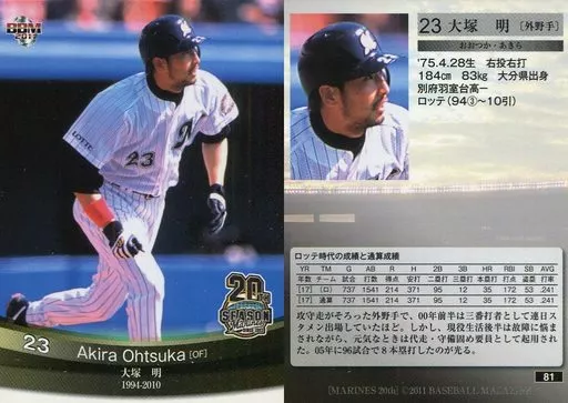 Nombre comercial en japonés: BBM/レギュラーカード/BBM2011 千葉ロッテマリーンズ 20周年ベースボールカード 81 [レギュラーカード] : 大塚明