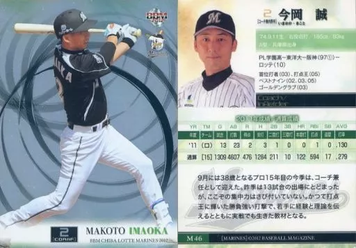 Nombre comercial en japonés: BBM/レギュラーカード/BBM2012 千葉ロッテマリーンズ M46 [レギュラーカード] : 今岡誠