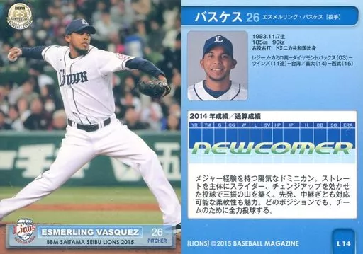 Nombre comercial en japonés: BBM/レギュラーカード/BBM2015 埼玉西武ライオンズ L14 [レギュラーカード] : バスケス