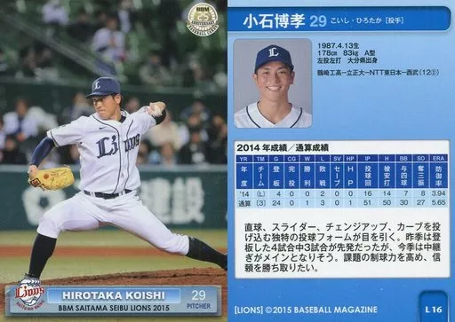 Nombre comercial en japonés: BBM/レギュラーカード/BBM2015 埼玉西武ライオンズ L16 [レギュラーカード] : 小石博孝