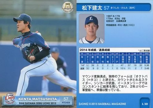 Nombre comercial en japonés: BBM/レギュラーカード/BBM2015 埼玉西武ライオンズ L30 [レギュラーカード] : 松下健太