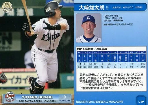 Nombre comercial en japonés: BBM/レギュラーカード/BBM2015 埼玉西武ライオンズ L59 [レギュラーカード] : 大崎雄太朗