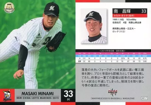 Nombre comercial en japonés: BBM/レギュラーカード/BBM2015 千葉ロッテマリーンズ M17 [レギュラーカード] : 南昌輝