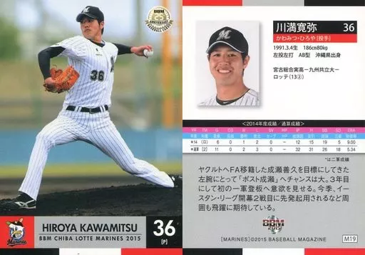 Nombre comercial en japonés: BBM/レギュラーカード/BBM2015 千葉ロッテマリーンズ M19 [レギュラーカード] : 川満寛弥