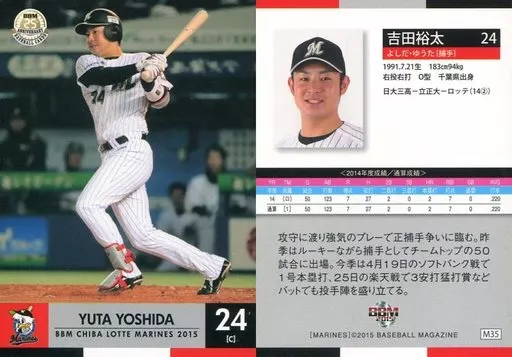 Nombre comercial en japonés: BBM/レギュラーカード/BBM2015 千葉ロッテマリーンズ M35 [レギュラーカード] : 吉田裕太